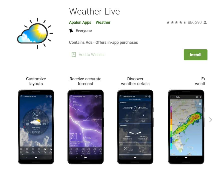 This app allows you to check the weather forecast without having to run the application. You may simply put a visually attractive widget on your screen. Another useful option for this app is that it allows you to display current weather conditions in live notifications.