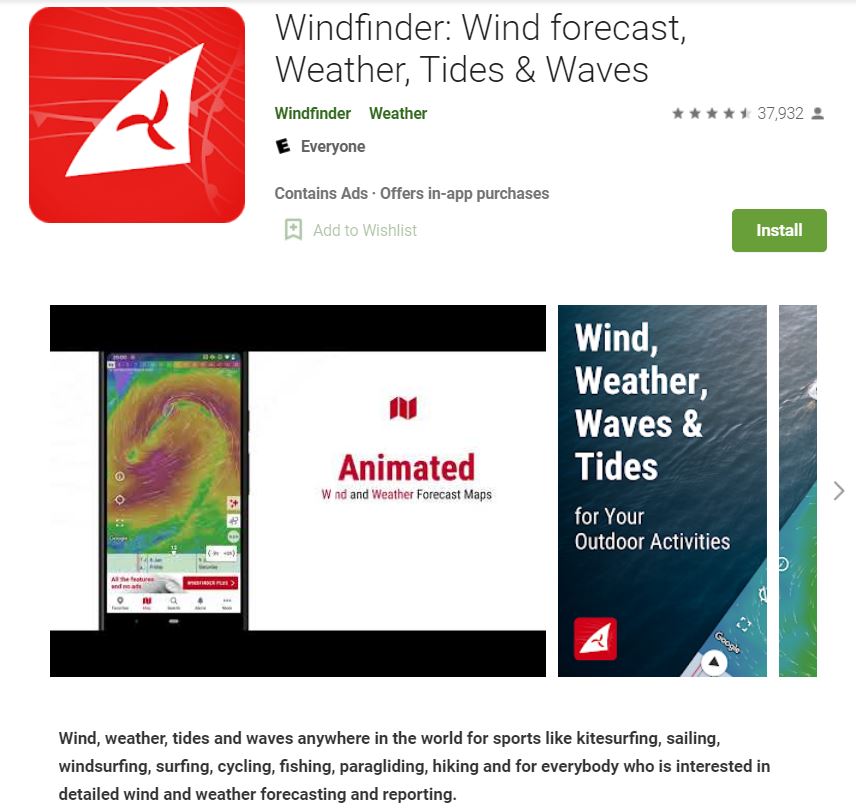 The Windfinder app provides accurate global forecasts for wind, weather, tides, and waves. The app’s optimized display of forecast and measurements pave way for optimal readability on the go on any mobile device. It also has animated wind map for global wind overview.